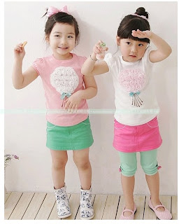 bitz女宝儿套装 小T泡泡袖+小群 可爱小图案
